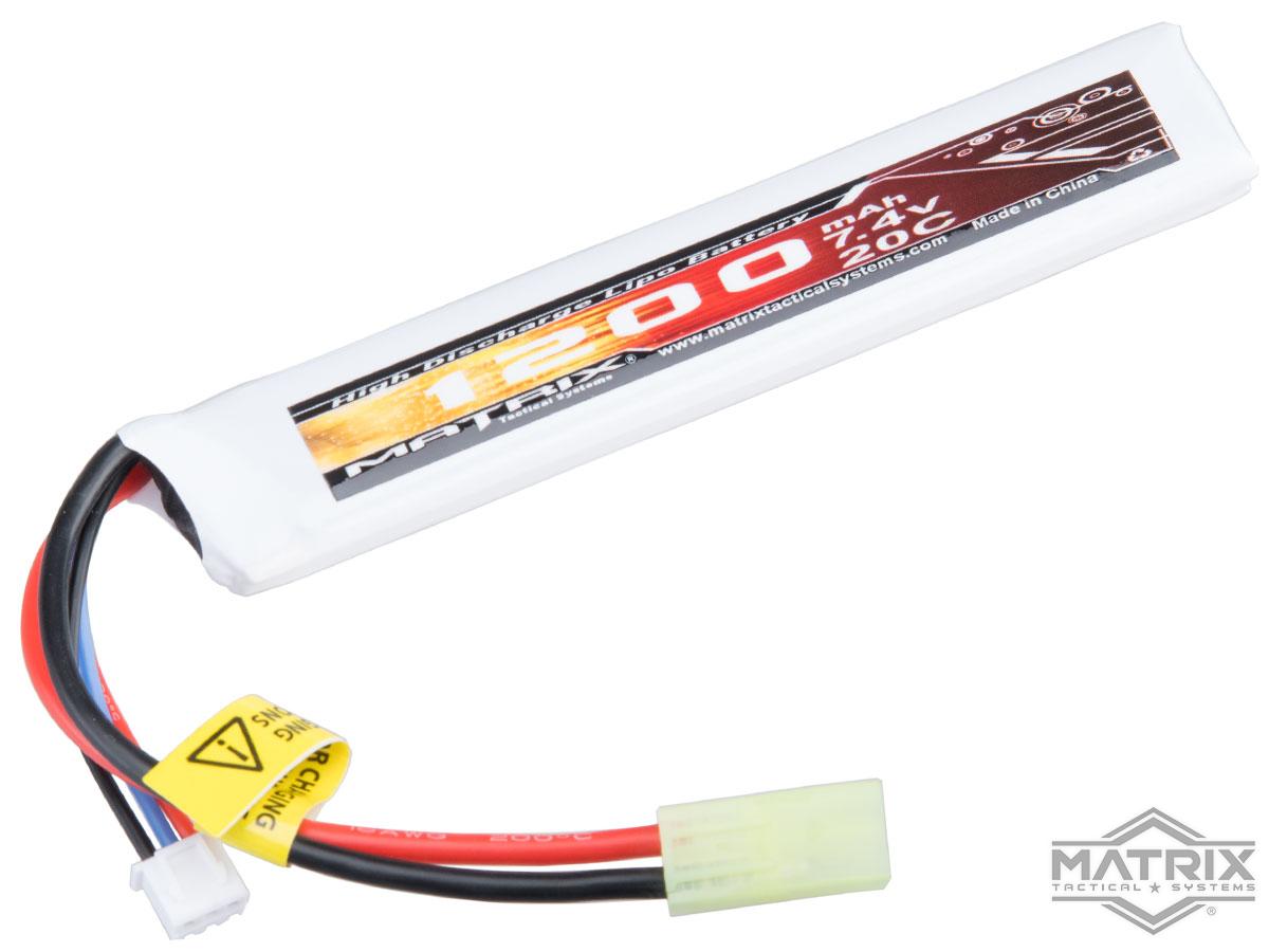 Batería LiPo Airsoft Matrix 7,4 V tipo barra (1200 mAh/20 C Tamiya y cable largo)