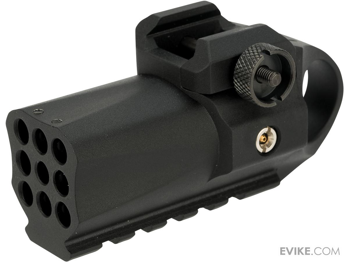 - Se adapta a los rieles debajo del cañón de las pistolas Airsoft más populares